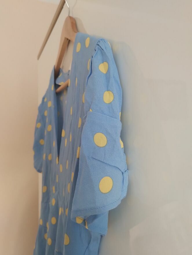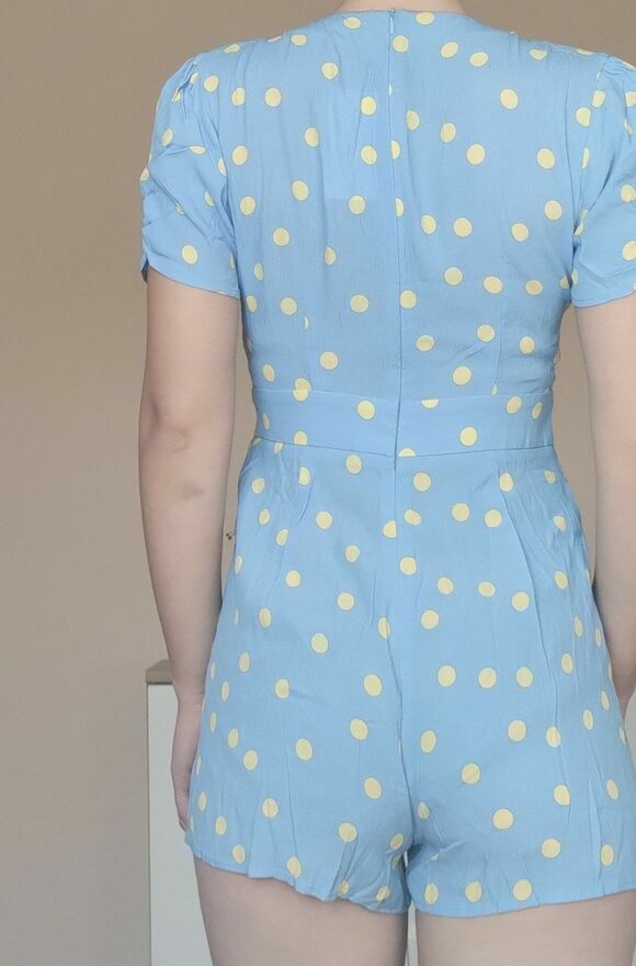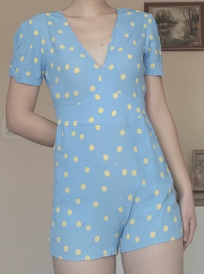 Błękitny kombinezon krótki damski wiskoza dekolt v